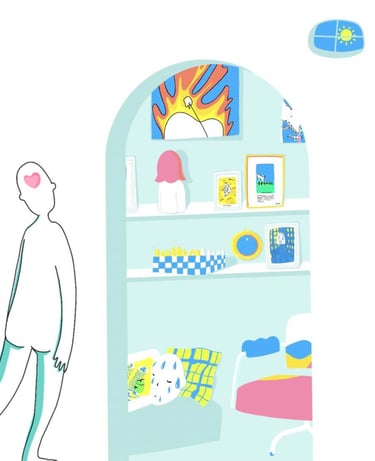 À travers ses œuvres, Objets d’art, mobiliers transformés, textes et illustrations, Gatou traduit le monde avec légèreté et humour, façonnant un univers empreint de douceur.