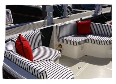 canapé sur mesure tapisserie d'ameublment tissus à rayures