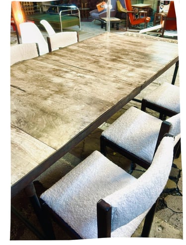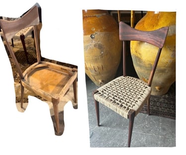Rénovation de tabourets hauts scandinaves des années 60-70 avec une teinture vietnamienne brodée.