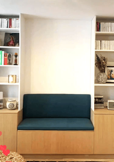 Rénovation d’un pouf ottoman avec un tissu japonais à motifs traditionnels.