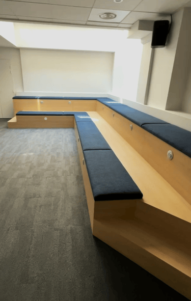 Restauration de galettes de chaises suédoises avec un tissu moumoute pour un confort doux et moderne.