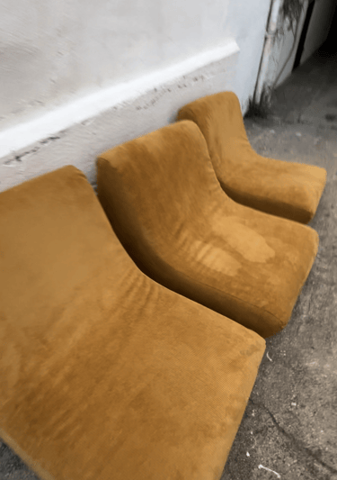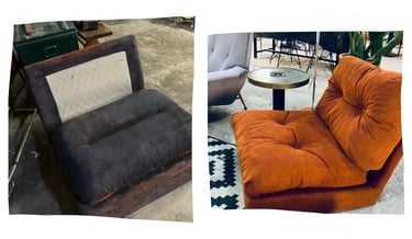 Avant/après d’un canapé restauré avec un textile de luxe africain signé Aïssa Dione.